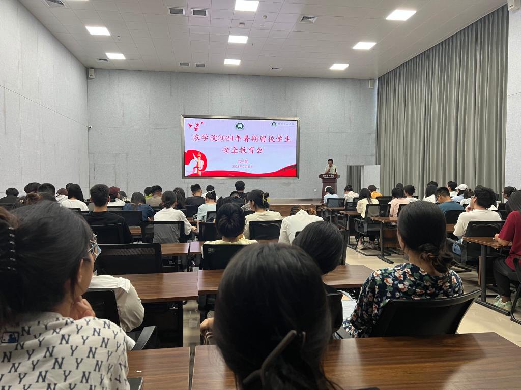 会上,陈磊宣读了《农学院2024年暑期留校生管理方案》,提醒各位老师要认真履行职责,加强安全教育,要求全体留校学生要严格遵守各项规章制度。随后,王付娟传达了学校暑期留校的相关管理规定,并从人身安全、心理健康安全、交通安全、网络安全和实验室安全等方面对在校生进行安全教育。她对157名留校毕业生提出三点希望和要求:一是要加强纪律意识,严格遵守学校和学院的各项管理制度,守住安全防线;二是要合理利用时间,养成良好的学习习惯,做到劳逸结合;三是在校期间遇到任何困难,及时向相关老师反馈。
