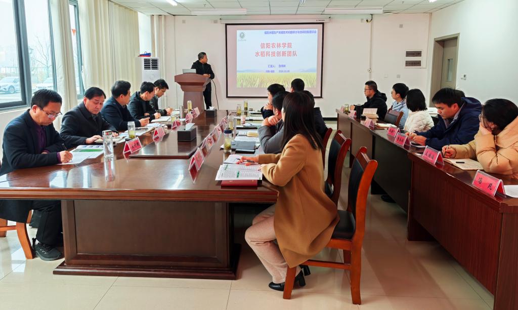 春潮涌动启新程,聚力攻坚促发展。为破解信阳优质水稻产业发展关键技术难题,推动校地融合、助力信阳水稻产业高质量发展,3月9日,我院召开信阳水稻生产关键技术问题研讨与协同创新座谈会。信阳市农业技术服务中心主任苏东,河南省水稻产业技术体系首席专家、信阳市农业科学院副院长扶定,信阳市农业农村局种植业与农业机械化管理科科长胡克光,信阳市农业农村局乡村产业与发展规划科科长贾晓迪,信阳市农业技术服务中心负责人王开斌,beat365在线平台官网副校长雷振山,校科技处(社会合作处)副处长刘秋员、水稻科技创新团队全体人员参加会议。会议由院党委书记李传保主持。