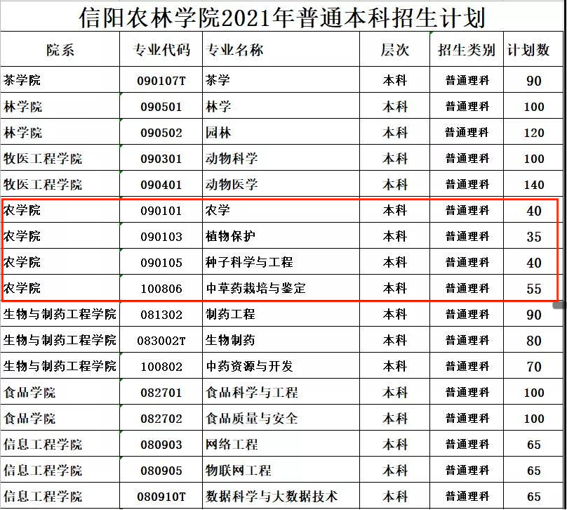 农学院2021年计划招生260人,其中农学专业40人、植物保护35人、种子科学与工程40人,中草药栽培与鉴定55人,农学(专升本)30人,植物保护(专升本)60人。