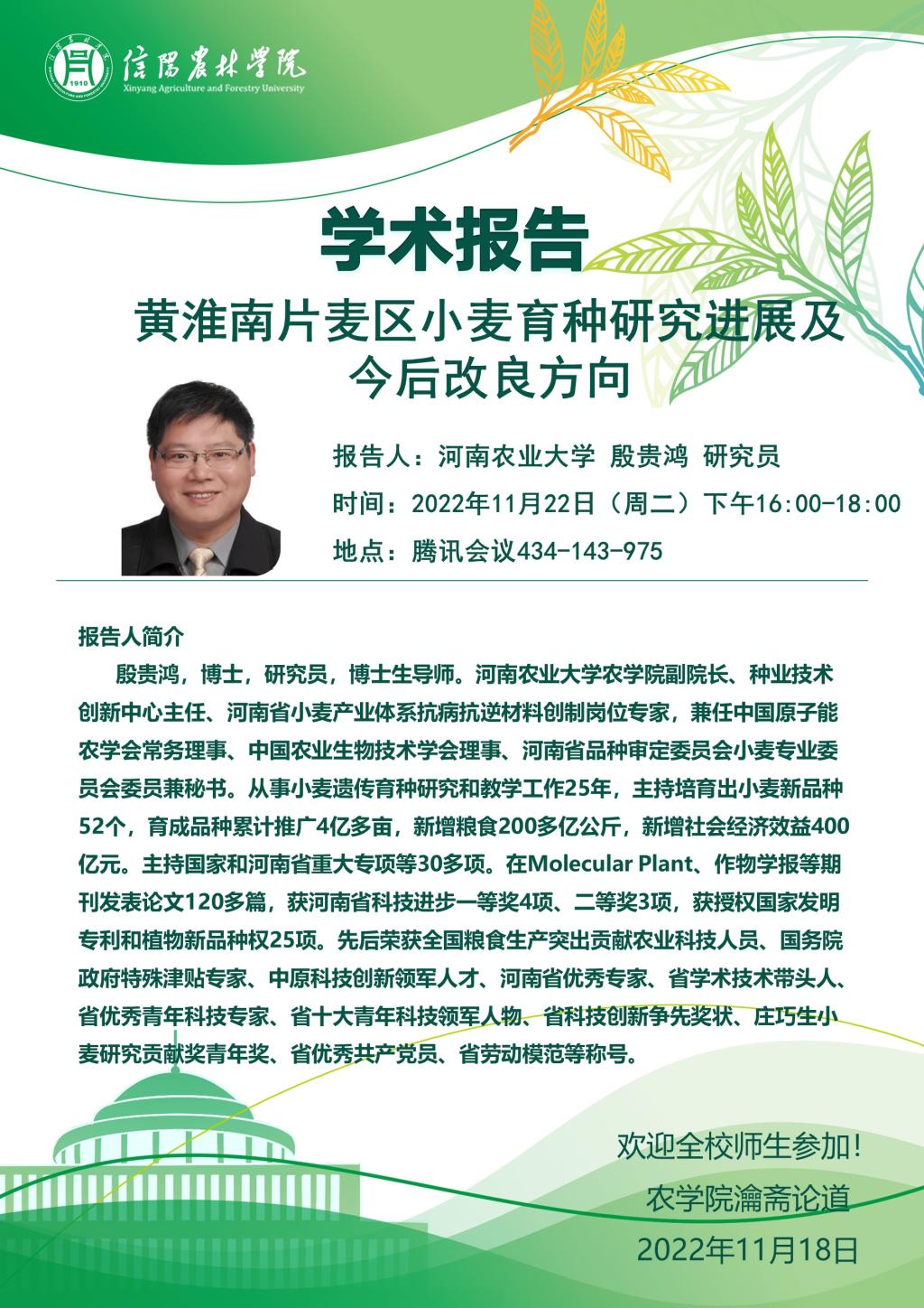 “瀹斋论道”第8期学术报告:黄淮南片麦区小麦育种研究进展及今后改良方向