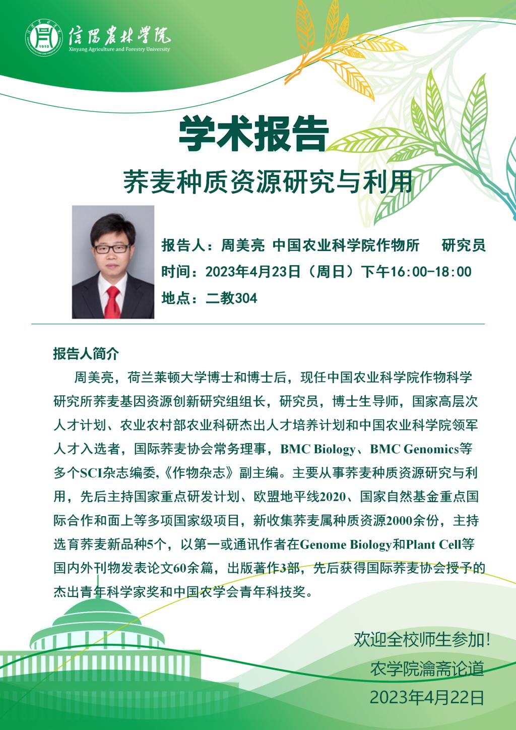 “瀹斋论道”第12期学术报告:荞麦种质资源研究与利用
