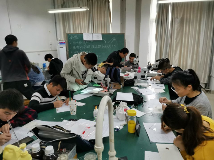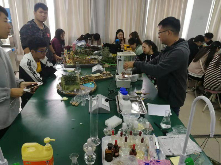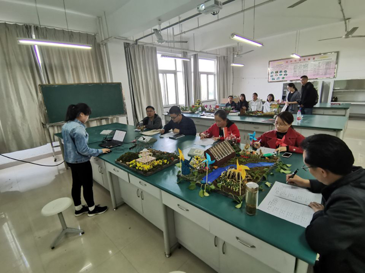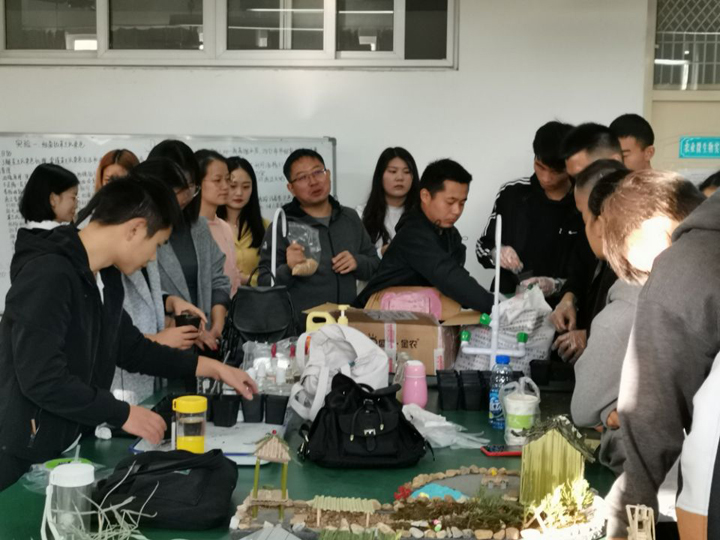在昆虫微景观制作环节,陈俊华副教授指导制作方法,部分专业教师参与指导,最后由潘鹏亮、王春生、洪枫和乔利等四位博士和周顺玉副教授对昆虫微景观进行考核打分。通过创作昆虫微景观环节,培养学生的创新能力、审美能力和实践操作能力,使学生从思想上真正领会绿色植保的意义。
