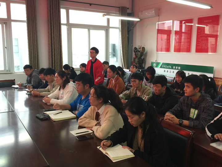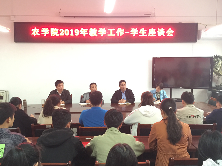 为进一步提高我院教育教学质量,了解学生对学院教学工作的意见和建议,加强教风学风建设。2019年11月7日下午,农学院在2A316召开2019年教学工作-学生座谈会。农学院党总支书记胡显淼、副院长李传保、党总支副书记王付娟、专业教师徐运飞、各班级学习委员和学生代表参加座谈会。会议由农学院副院长陈利军主持。