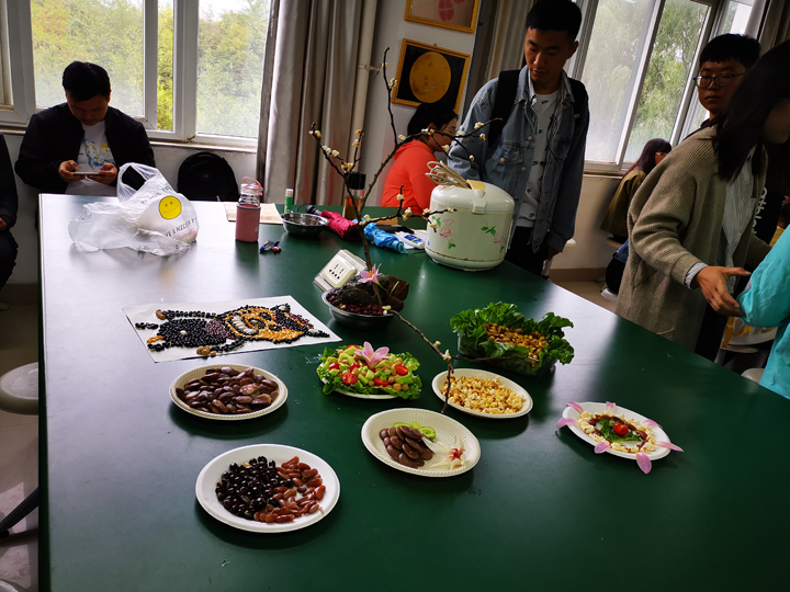 根据综合实训安排,由季新博士在平桥区甘岸镇二郎村的繁高农业种植专业合作社给大家实地讲解了豫南地区水稻种植,籼粳稻差异,常见水稻病虫害防治等内容;期间邀请了河南农业大学研究生王留行给大家讲解了试验小区区组划分方法,参观了机插秧和手插秧稻田及氮肥处理试验田等内容;由孙君艳教授给同学们讲解了水稻田间测产方法,并组织同学进行了株高、有效穗数的调查和小区收割测产等工作;由王国君老师给同学们讲授了无人机在农业生产中的应用,并进行了无人机模拟操作培训;由卫云飞老师给同学们作了实验室安全教育培训,并组织同学们进行了实验室考种技能比赛;由李淑梅和董丽平两位副教授培训了种子形态构造观察、豆类种子深加工及艺术鉴赏等内容,同学们仔细观察了各种各样的农作物种子,并且用豆类种子拼出了很多富有寓意的作品,最后指导老师还就20种豆类种子的性状、分类等对同学们进行了分组考核。