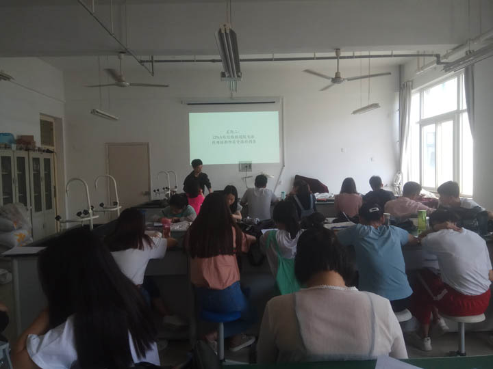 本次实习主要内容有4个方面:一是植物DNA的提取,同学们在实验室认真操作,掌握了植物叶片DNA的提取及质量检测;二是白芨种植基地参观,学生了解了白芨的种植、管理及在生产中存在的问题,为以后的研究指明了方向;三是同学们分组进行校园药用植物种质资源调查,通过调查,对校园药用植物种质资源及其特征、发育阶段、收获季节有了进一步的了解,同时也培养了学生的团队协作精神;四是分组对太阳坡实习基地的黄芪,百合,红花进行管理及观察。最后以小组为单位,通过PPT汇报的形式对实习内容进行了汇报。