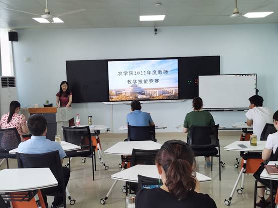 为鼓励我院教师更新课堂教学观念,聚焦教学创新,推动教学改革,强化信息技术融入,引导教师潜心教书育人,全面提高我院的教育教学质量,根据学校《关于举办2022年度beat365在线平台官网教师课堂教学创新大赛的通知》要求,经过前期各教研室的选拔和推荐,我院以“智慧教学”作为主题于6月13日下午分“青年教师组&教授组”和“新进教师组”两组分别在农学院2A316和2A608举办农学院2022年度教师教学技能竞赛活动,共有13位教师作为选手参与比赛。我院党总支书记李传保、院长尹健出席并作为评委参加了本次活动,近三年新进教师进行了观摩和学习。