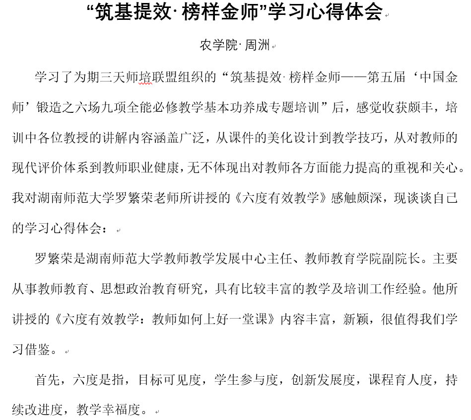 我院全体专任教师通过观看线上直播或回放视频的方式积极参与此次培训,顺利完成线上学习,并认真撰写提交培训学习心得,为提升课堂教学质量和进行有效教学奠定了坚实的基础。
