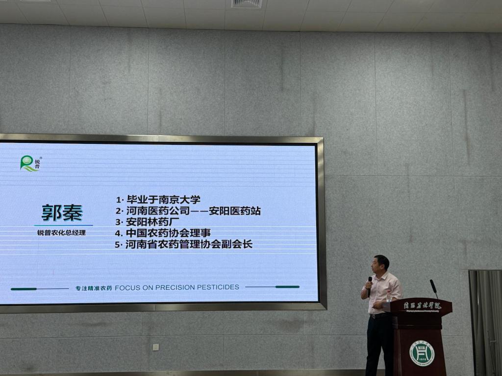 6月6日,安阳市锐普农化有限责任公司董事长郭秦莅临我院,为我院植物保护专业学生上了一堂关于农药行业最新动态的精彩授课。