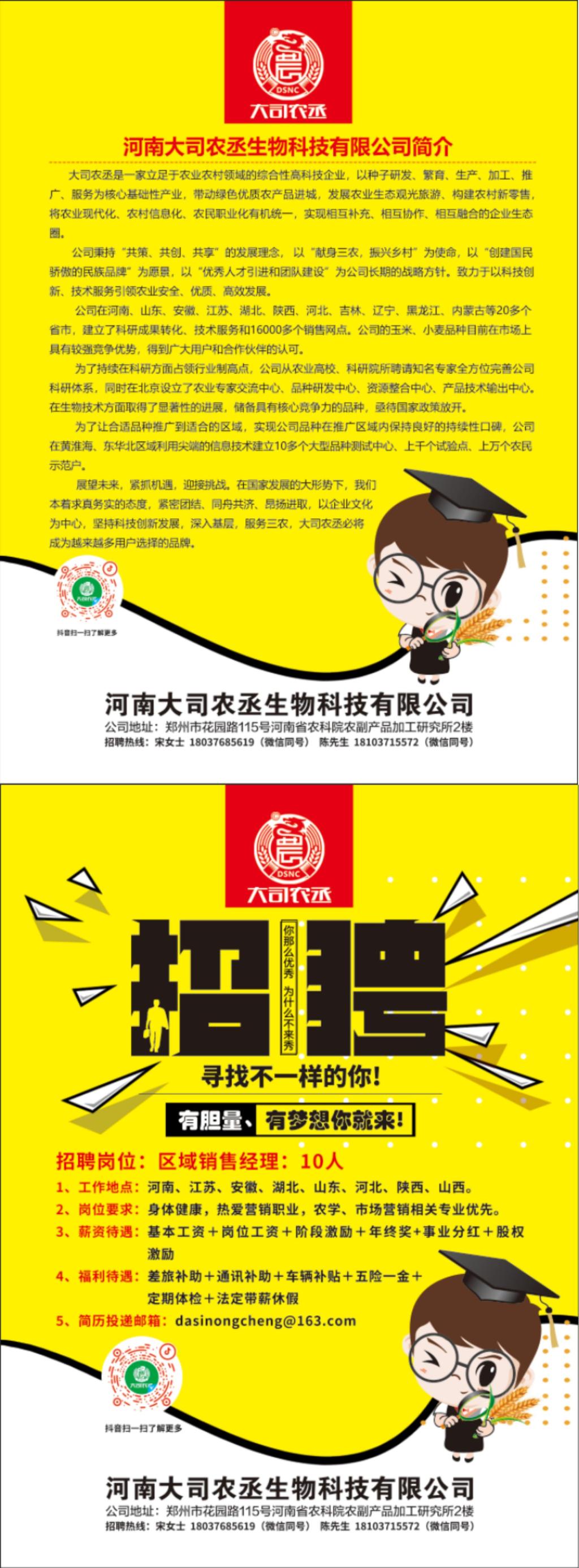 河南大司农丞生物科技有限公司招聘启事
