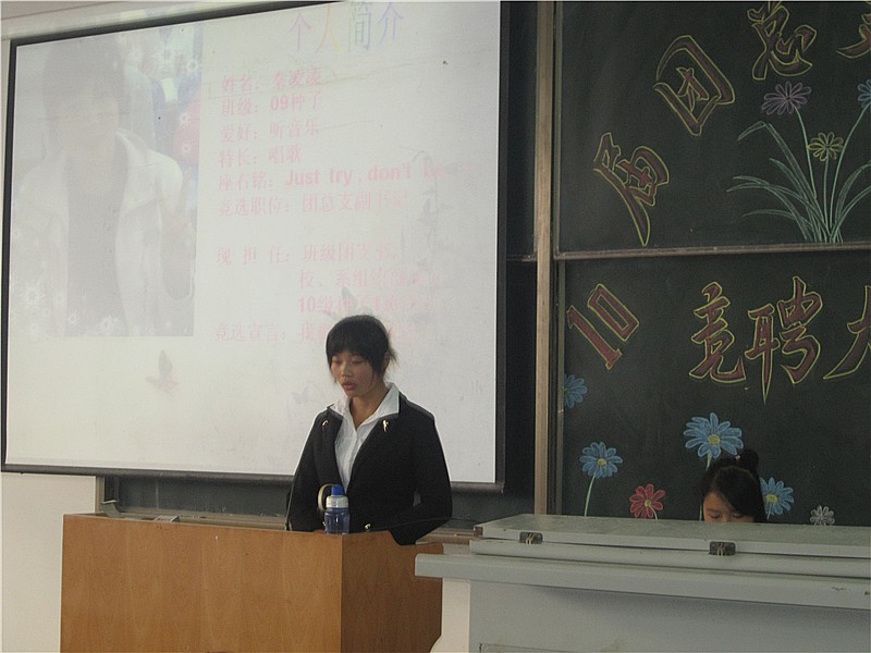 大会在杨林老师精彩的致词中拉开序幕,本次竞聘大会分上下两个半场,老师和各部部长做为评委。参加竞聘的每位同学在台上激情的讲述着一年来在学生会工作中的收获,并对指导老师表示深深的敬意和感谢,但他们更多的是表明自己的决心和能力能够胜任所应聘的职位。75位竞聘者慷慨激昂的演讲赢得在场同学的阵阵掌声,现场气氛一片高涨。在李书记最后的点评中,指出此次参加竞聘的同学能够站在台上就是一种成功,伴随着他优美的歌声本次大会落下帷幕。