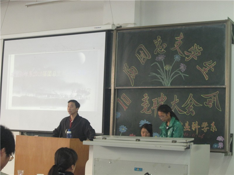 11月6日,我系在E201举办了第十届团总支学生会竞聘大会。出席本次活动的领导老师有李传保书记、杨林老师、王国君老师、王付娟老师、成泽艳老师。