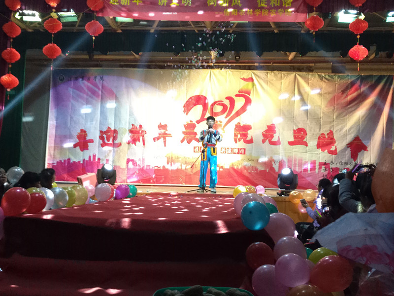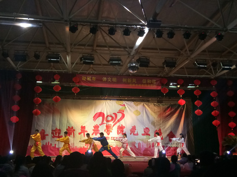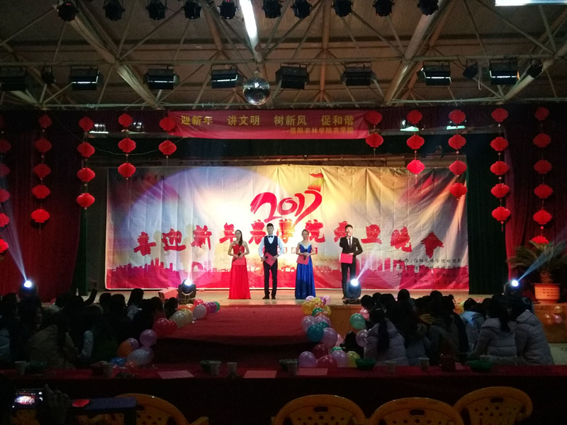 为了丰富同学们精神文化生活,搭建师生互动交流的平台,营造良好课余文化生活,12月24日晚,元旦佳节来临之际,我院在大学生活动中心(一餐三楼)举办了青春洋溢的元旦联欢晚会,喜迎新年的到来。参加晚会的有校团委副书记王鹏、学生处思政科科长陈丽文、农学院部分领导老师等。我院全体学生观看了此次晚会。
