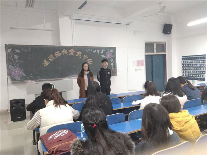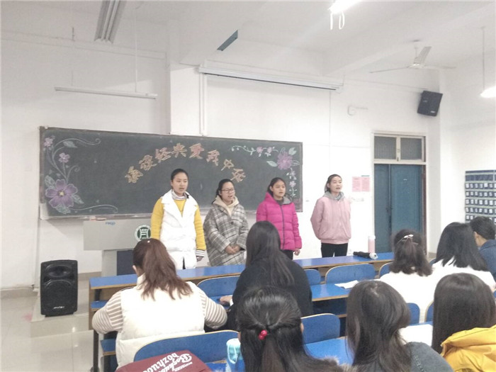2018年11月17日上午,我院在一教A105举办以“诵读经典,爱我中华”为主题的朗诵比赛。本次比赛由17级主持组刘倩、王赛美、庞素芸、海金宝、候叶芳、苏芽冬同学担任评委;宣传部曹孟洁、陈毅君同学担任主持,18级各班代表同学参加。