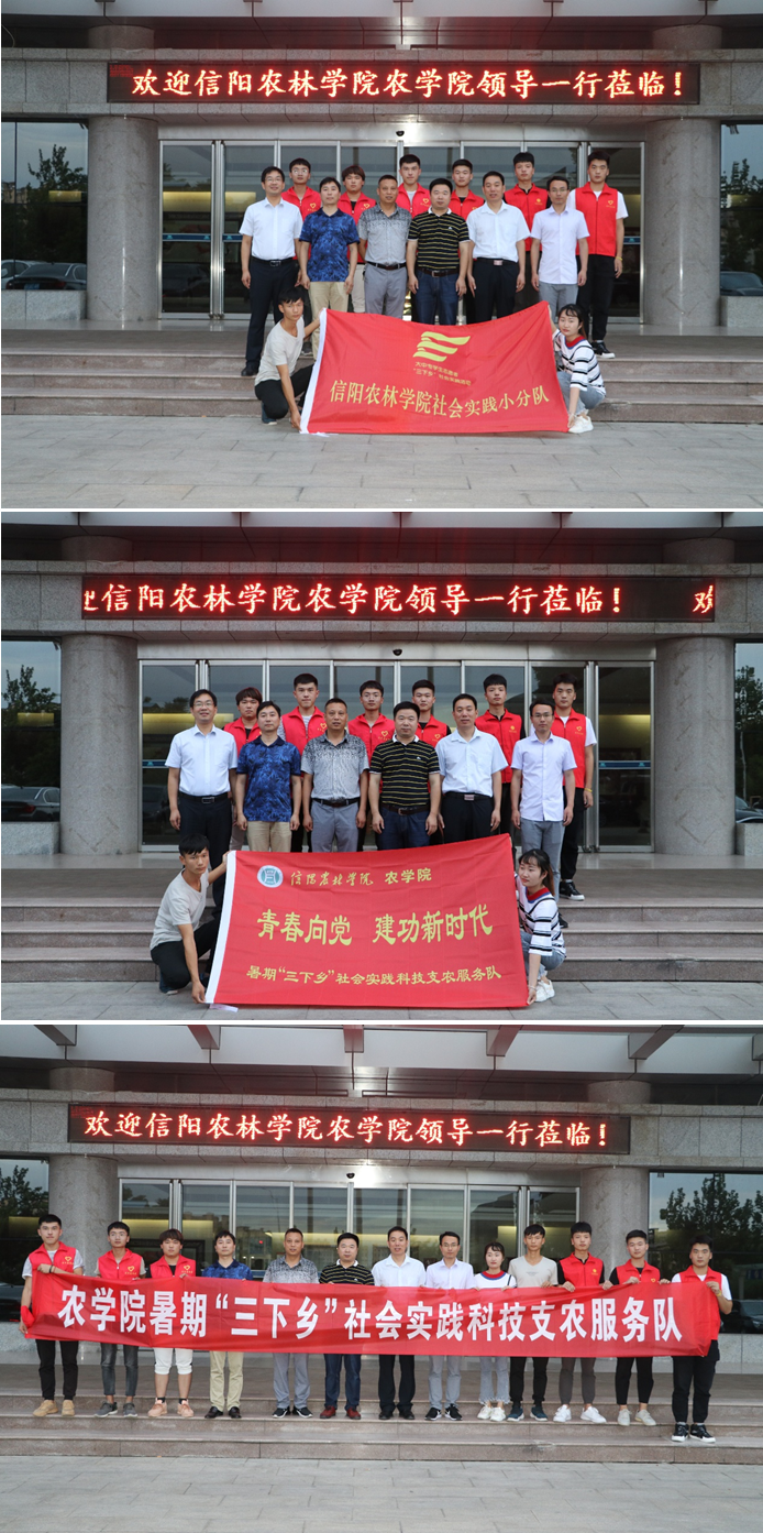 6月29日,在农学院党总支书记雷振山的带领下,副院长李传保、团总支书记杨林、专职辅导员武浩一行赴郑州绿业元农业科技有限公司开展暑期“三下乡”社会实践启动仪式。