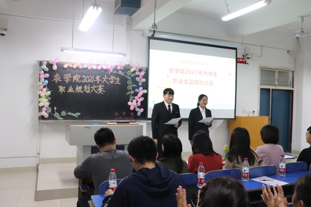 为培养学生的职业生涯规划意识,明晰职业发展目标,10月31日下午,农学院在一教A205举办2021年大学生职业生涯规划大赛。农学院党总支副书记王付娟、副院长董丽平、教师代表洪枫、杨艳琳、杨丽、李猛、陈磊受邀担任本次比赛的评委。经过前期报名初选,共有18位选手脱颖而出,进入决赛。