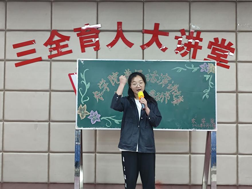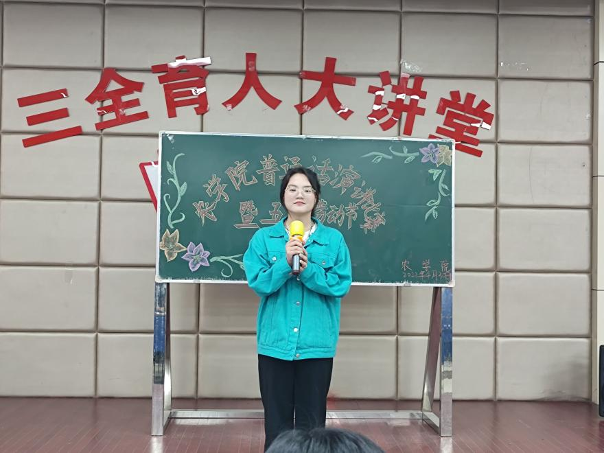 为了进一步培养学生语言文字应用能力,增强自觉规范使用国家通用语言文字和传承弘扬中华优秀文化的意识,进一步提升学生们的综合素质,2022年4月30日下午,我院在一教E101举办普通话演讲比赛。本次活动由学工组杨春玲老师出席担任评委,21级部分学生参加。