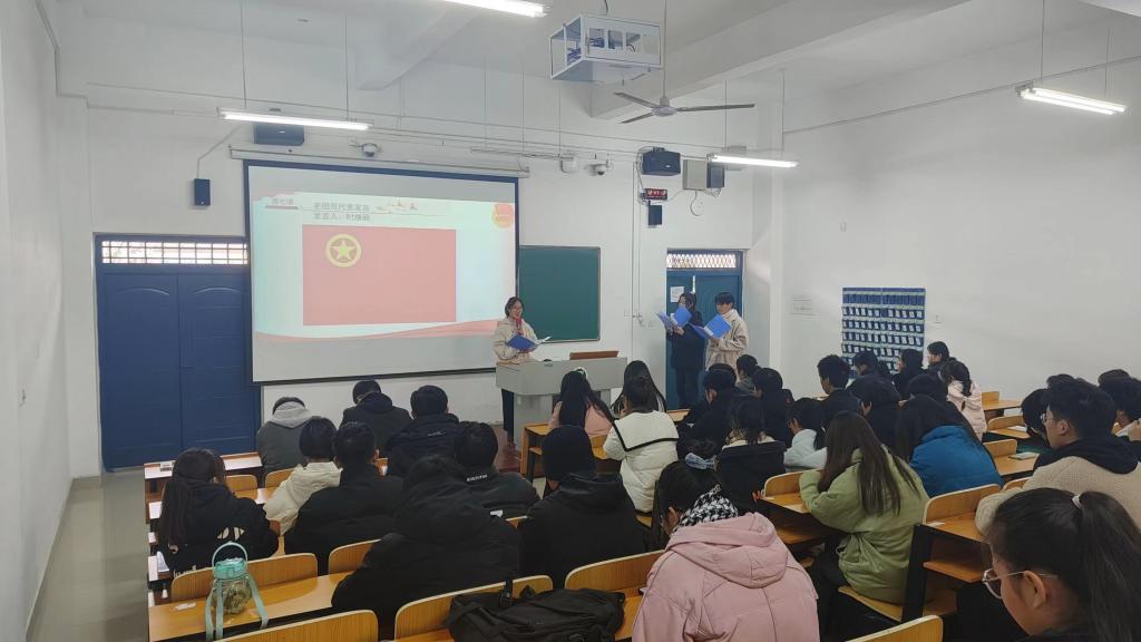 为进一步激发新团员的社会责任感,12月27日中午,我院团总支在二教205举行新团员入团宣誓仪式,院团总支书记陈磊、20名秋季新发展团员和部分老团员代表参加此次活动。