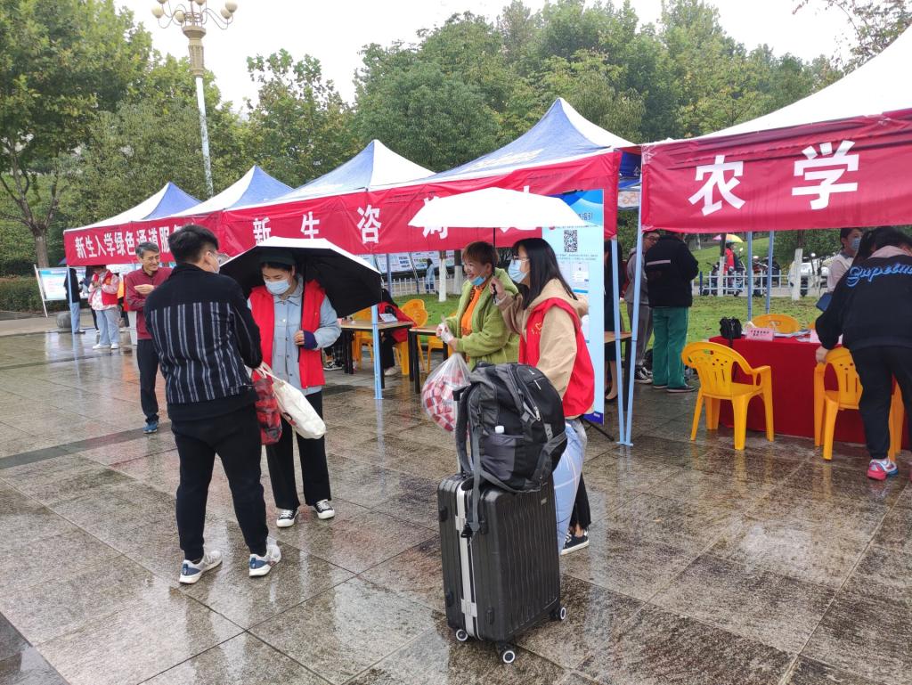 丹桂飘香,荷花满塘。这是一个孕育希望的起点,也是一个放飞梦想的时节。农学院学生党员分布在学校各个迎新站点:火车站、校门口、报道处、寝室楼……他们带领着新生穿梭于报名登记、领取水卡等新生办理入学手续必经的各个地点。所有人对每一个细节都精益求精,在效率和质量两不误的情况下顺利完成任务。即使是冒着雨的天气,也毫不退缩。在整个迎新工作中,我们坚持严要求,高标准,努力做到热情、细致、周到、规范、有序,赢得了新生及家长的一致好评。