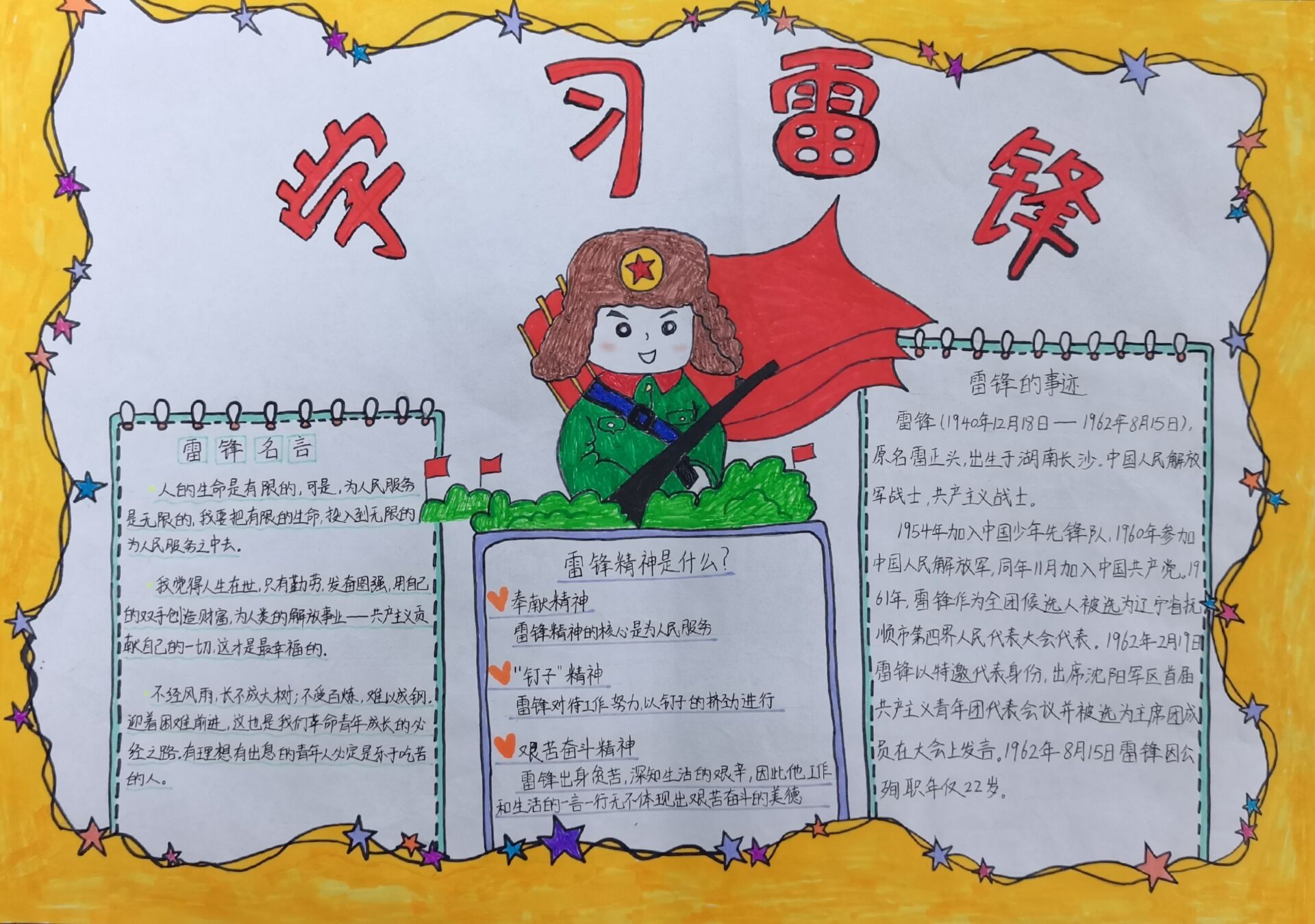 为了给建党一百周年献礼,农学院党总支组织学生党员、预备党员和入党积极分子积极开展了以“学习雷锋精神”为主题的手抄报活动。通过手抄报展示以雷锋精神为代表的中华民族的优良传统,充分考虑特色党支部建设情况,带动党员完全深入了解雷锋“全心全意为人民服务”的精神,增强大学生党员的责任感、幸福感、荣誉感,加强党员政治学习。