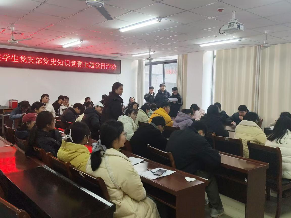 为深入贯彻党的教育方针,强化党史学习教育成效,2025年1月2日中午,农学院学生党支部在3A105组织开展了“党史照初心,青春竞风华”党史知识竞赛主题党日活动,由学生第一党支部书记龚静阳和学生第三党支部书记陈秀云担任评委。