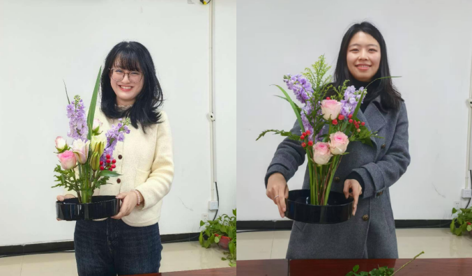本次活动,学院邀请了园艺学院杨丽老师进行现场教学。她从花材的选择、插花流程及技巧等方面进行了详细的讲解,并示范插花。随后,老师们纷纷拿起手中的花材精心修剪、巧妙搭配,展现出极高的热情和创造力。现场气氛温馨又热烈,一盆盆精美的插花作品各具形态,或清新雅致,或艳丽夺目。