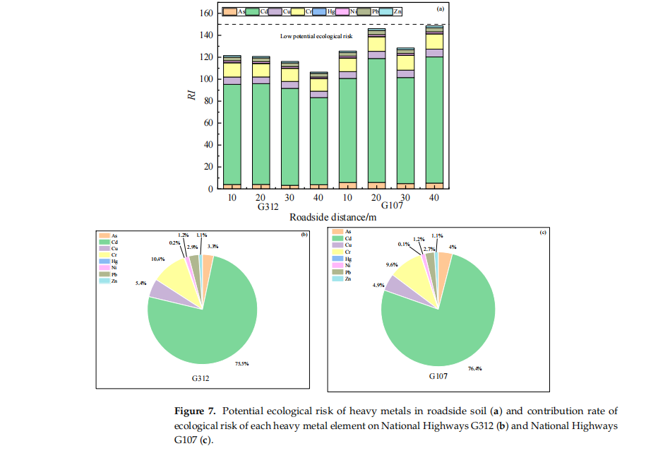 土壤生态系统是全球农业生产力和环境可持续性的根本基础,然而,人类活动已导致陆地环境遭受严重重金属污染,对生态完整性和人类健康构成重大威胁。在农业系统中,重金属积累会破坏土壤结构,且难以修复。土壤中重金属的来源多种多样,其中机动车排放是引起道路周边土壤重金属污染的重要来源之一。本研究通过多指标评价法,对豫南地区G107、G312两条国道沿线稻田土壤中的重金属进行了污染状况及生态风险评估,发现镉、汞、铜和锌超出省级背景值。镉污染最为显著,107国道路测距离40米范围内达到重度污染水平(单因子指数Pi>5),G312国道呈中重度污染(Pi=2-5)。Nemerow指数(PN)表明两国道重金属污染为轻度污染水平(PN=0.70-0.81),其中G107国道污染程度更高。地质累积指数显示:G107和G312国道路测距离40米范围内镉污染程度为轻度-中度,G107国道路测距离20-40米范围内锌达到轻度污染水平。尽管总体生态风险较低,但镉因毒性高(Tr=30)导致其在累积风险中占比超过75%。因此本文揭示了公路交通是河南省南部国道沿线稻田土壤重金属积累的主要来源,会对国道沿线的农业耕作存在潜在食品安全风险,为该地稻田土壤重金属污染防治提供了科学依据。