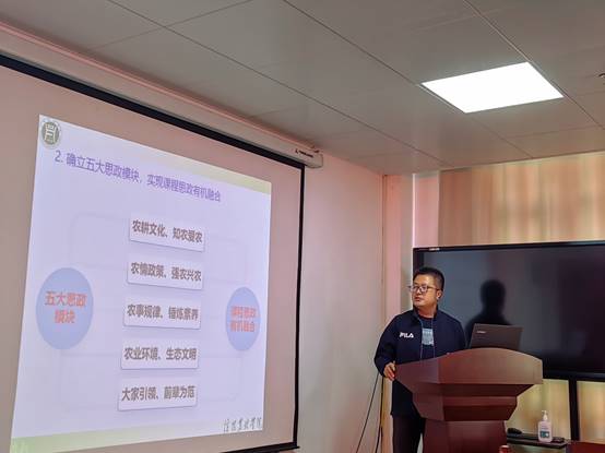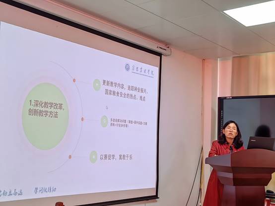 参加结项的各位老师通过PPT汇报了课程思政样板课的建设目标完成情况和建设成果,同时展示了如何将“三农”情怀、家国情怀、文化素养、责任担当、科学精神、创新精神和生态安全意识等思政元素融入到专业课程的教学中,实现知识传授与价值引领的有机融合。项目评审小组一致认为参与结项的四位老师准备的结项材料齐全,均能够很好地将思政元素融入到专业课理论教学和实践教学中,并取得了一定的建设成果,充分发挥了课程思政的育人作用。