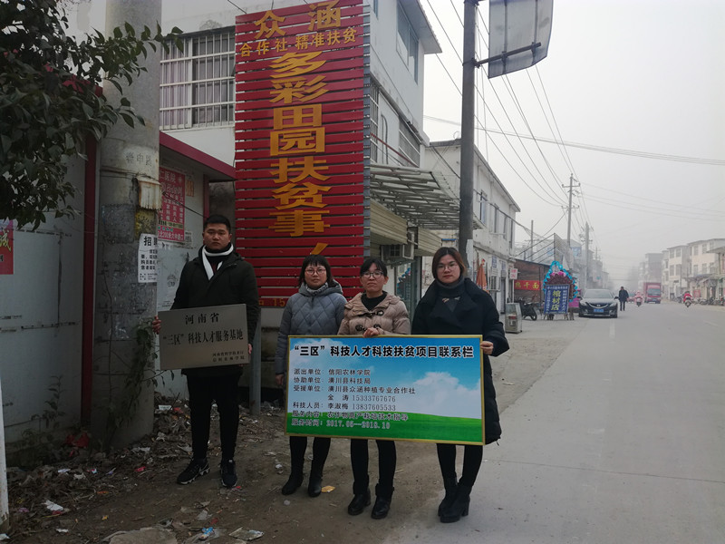 2017年12月30-31日,农学院教师刘红敏、李淑梅和金明慧一行3人赴潢川开展三区技术服务工作和挂牌仪式。
