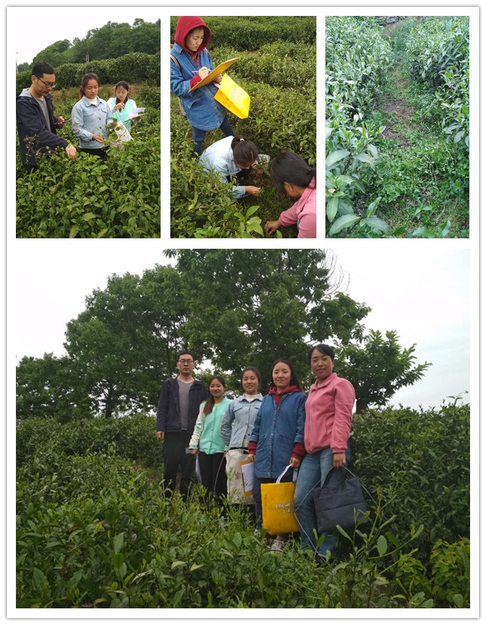 2019年4月28日,院士工作站药用植物团队成员刘红云、信龙飞带领3名植物保护2016级学生对信阳茶园进行杂草调查。