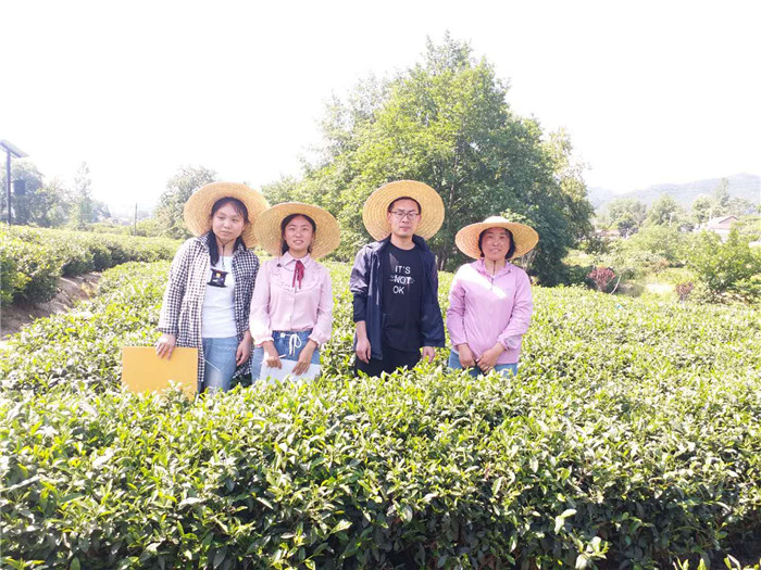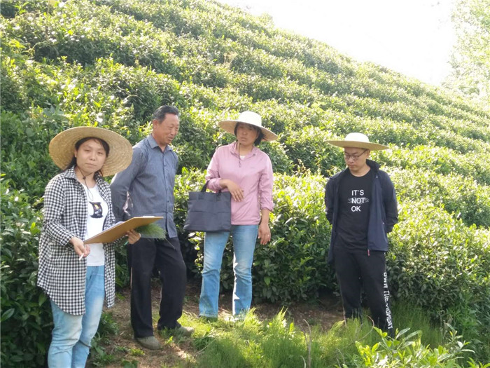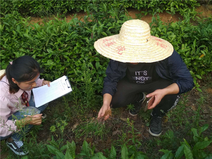 019年5月11日,院士工作站药用植物团队老师刘红云、信龙飞带领2名2016级植物保护专业本科生对信阳浉河区茶园进行杂草调查。