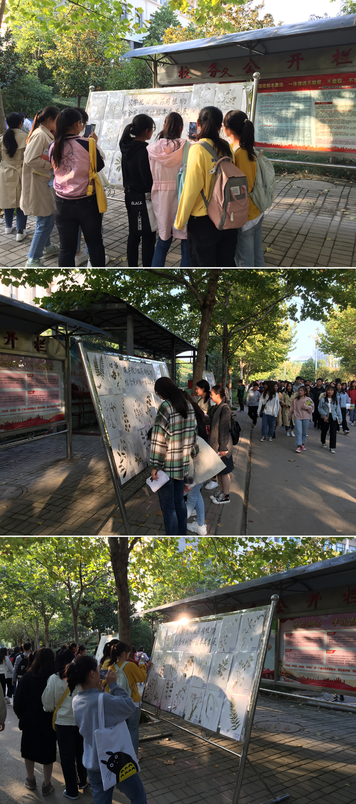 金秋十月,丹桂飘香,收获的季节。10月16日至21日,我院药用植物教研室顺利举办了首届药用植物腊叶标本展。本次展览种子科学与工程(药用植物)专业16、17、18及中药生产与加工18三个年级192名同学共同参与,在全体专业教师指导下,由药用植物社团具体承办。旨在提高同学们药用植物基源鉴别水平,为后继专业课程学习和创新创业能力培养打下坚实的基础。