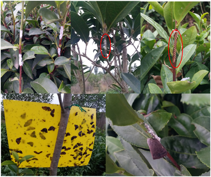 金银利博士将校青年基金项目和院士工作站研究有效结合,主要致力于茶园吸汁类害虫季节性发生规律和越冬种群生态适应性研究工作。此次茶园吸汁类害虫越冬情况调查主要涉及绿盲蝽、柿广翅蜡蝉和八点广翅蜡蝉等优势种群。这类害虫均属于以卵越冬的昆虫,随着气温的下降和昼夜长短的变化,此类害虫开始在茶树枝条当年剪口的髓部海绵状组织内、茶树花托上或茶树枝条上产下越冬卵,严重影响茶树正常的营养输送,其若虫刺吸为害的习性还会影响来年茶树芽头的品质。