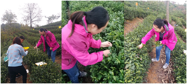 2019年10月26日,植物保护教研室昆虫科研小组成员金银利博士带领2名植物保护专业学生,在马全朝老师的协助下,赴南湾湖沿线7个茶园,开展吸汁类害虫越冬情况调查。