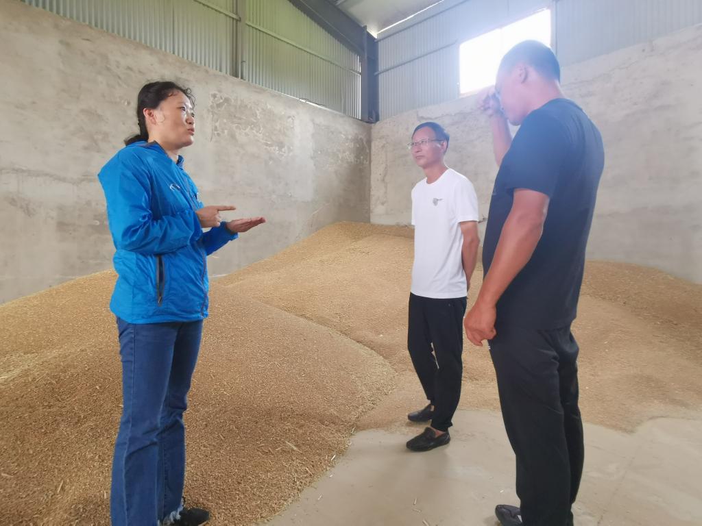 科技服务团在息县建业种植专业合作社许建社长的带领下调查了今年收获的弱筋小麦籽粒情况和市场收购情况。许社长介绍今年合作社的小麦整体长势良好,前期合作社积极给与指导,小麦赤霉病和锈病发生情况不太严重,籽粒饱满,容重好,收购价格达到每斤1.25元,收益比往年高,许社长非常感谢服务团在小麦病虫害发生的关键时期给予指导,希望后期能够建立更多合作、给予更多的服务。