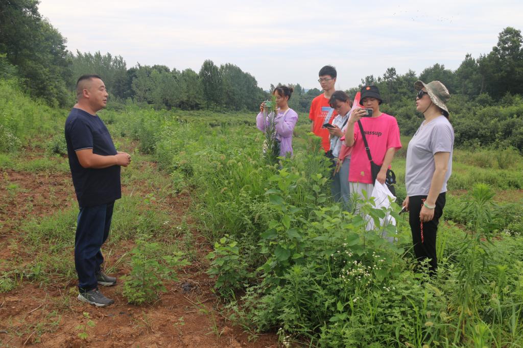 2021年7月10日,学生暑假伊始,应企业邀请,中草药栽培与鉴定专业教师张艳玲、孙万慧带领2018级种子科学工程(药用植物)专业学生杨婷婷、贾晓静、禹方圆、王玮,组成服务团前往浉河区东双河镇信阳广通中药材合作社开展社会服务,服务团与合作社负责人对野菊花、桔梗等药材的栽培规模、用工情况、栽培技术等中药材栽培中的问题进行了交流,向合作社就野菊花的打顶时期与高度、控制生长的次数与效果、野菊花混作其它作物等规范化栽培技术提供了技术指导。