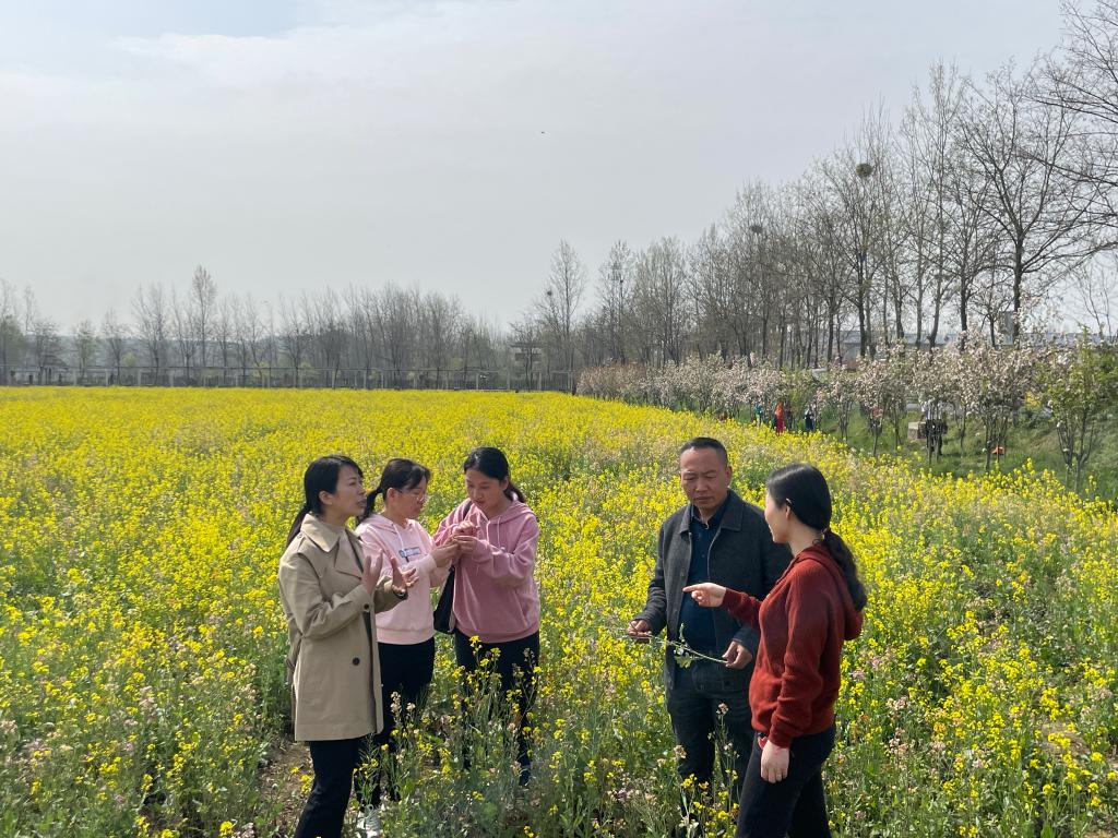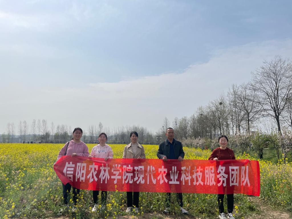 3月29日,beat365在线平台官网现代农业科技服务团成员董丽平、王付娟、李淑梅、陈文静等赴信阳明港新集村兵建农业种植专业合作社开展科技服务,调查当地油菜生长情况并给予技术指导。