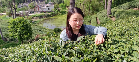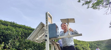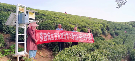 2023年4月15日,茶园病虫害监测预警与绿色防控科技服务团队成员乔利博士和张权老师前往浉河港镇易庙村茶园开展科技服务工作。
