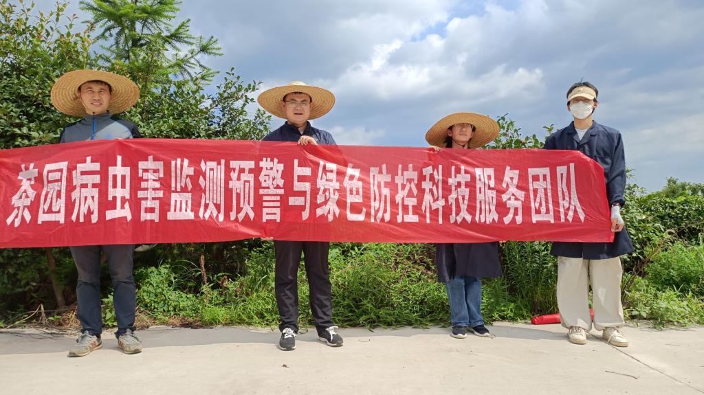 2023年7月6日,茶园病虫害监测预警与绿色防控科技服务团队成员、信阳市科技特派员耿书宝、洪枫老师带领张文烜、宋君川、江孟娜3名学生前往罗山县亿峰生态林业开发有限公司、信阳申林茶叶有限开发公司开展科技服务工作,进行茶树病虫害发生情况的调查工作。
