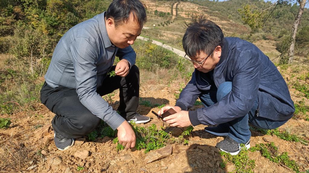 2023年11月1日,信阳市科技特派员、农学院尹健院长带领信阳市科技特派员耿书宝、徐运飞老师赴光山县淮河源林药种植专业合作社进行科技服务。