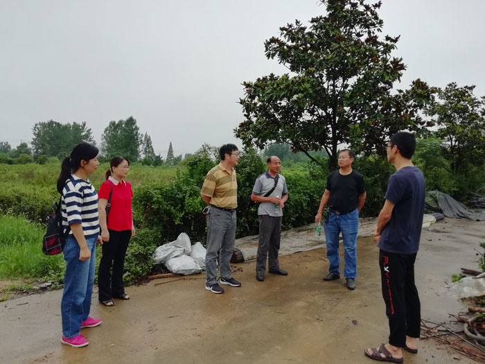 为进一步落实邢勇校长调研农学院时提出的要求,突出培养应用型人才的办学定位,主动搭建校外实习实训基地,促进实践教学的改革与发展,拓宽实践基地的建设渠道,2020年7月17日下午,我院院长尹健教授带领实验教学中心主任肖荣英副教授、植保教研室主任王国君副教授和副主任乔利副教授、科研秘书耿书宝博士一行5人到信阳市农科院五里店试验基地和陆庙试验基地考察与交流。信阳市农科院植保所所长卢兆成研究员、资环所所长潘兹亮研究员、张丽霞副研究员、郭晓彦副研究员、聂良鹏和史鹏飞助理研究员介绍了两处试验基地的在研项目和建设情况。