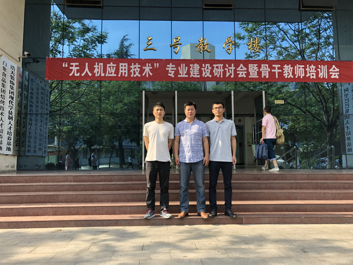 会议特邀了湖南航空工业职工工学院副院长、深圳无人机协会特聘专家贾恒旦老师,天津现代职业技术学院教师、天津市公安局警用无人机培训总教官杨宇老师,北方天途航空技术发展有限公司教研主任杜国新老师,北京中科浩电科技有限公司副总经理秦雪良老师等行业资深专家做了有关无人机专业的讲座。讲座后三位老师共同参观了漯河职业技术学院的无人机实训室,学习了他们的专业建设经验,为我院植物保护(航空植保技术)专业的建设提供了参考。