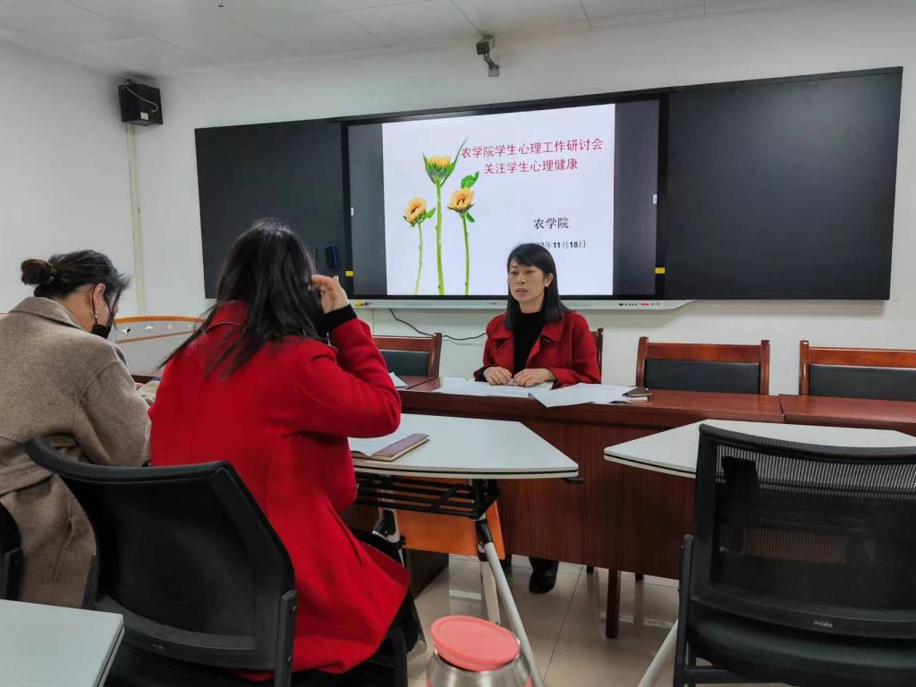 为加强学院学生心理安全教育,进一步摸清学生心理健康状况,切实掌握学生心理真实感受,11月18日上午,我院在学术交流中心520召开学生心理工作研讨会,会议由院党总支副书记王付娟主持,各班辅导员参加此次会议。