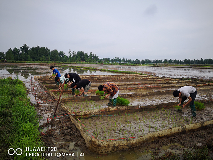 6月中旬正是信阳地区粳稻插秧的关键时期,水稻研究所3位成员带领18级种子科学与工程专业、19级农学专业和19级种子科学与工程专业学生15人,前往位于信阳市平桥区甘岸镇二郎村的beat365在线平台官网水稻研究所科研实习基地进行水稻种植工作。在水稻品种香稻丸株高改良试验田,卫云飞指导学生对香稻丸生长情况进行观察并对株高等指标进行了测定;在优质粳稻高产栽培示范田,季新带领大家搬运秧苗,使用插秧机对5个优质粳稻品种进行机插示范;在水稻氮高效利用试验田,刘秋员指导学生规划设置试验小区,使用挡水板对田块进行分割后对粳稻进行移栽。经过3天的共同努力,各试验的水稻移栽工作均保质保量的完成,确保了相关项目和毕业论文(设计)的顺利开展。