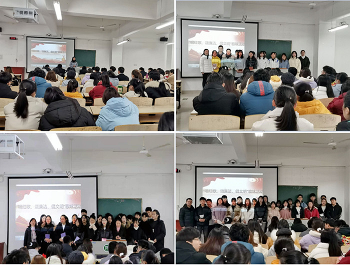比赛前,主持人简要说明本次比赛内容及意义。随后,三个学生党支部分别带来了红歌《精忠报国》、《歌唱祖国》、《大中国》。参赛者敞开心扉,释放激情,唱响了红色经典,更将老师和积极分子的思绪和情感带到那个伟大的时间段。嘹亮的歌声在教室里回荡,激扬热烈,灼热沸腾。王书记为本次比赛做总结,并勉励同学们真正的感受到红歌中的革命情感和时代精神,真正的用心领悟,用行诠释、弘扬红歌精神,勤奋学习,积极进取,懂得珍惜美好生活,今后为祖国发展贡献自己的力量。最后,第三学生党支部荣获一等奖,第二学生党支部荣获二等奖,第一学生党支部荣获三等奖,老师为获奖成员颁发奖品。