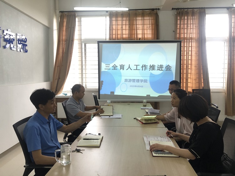 会上,陈建国传达了教育部关于印发《高等学校课程思政建设指导纲要》的通知精神,杜丽、陈婷和余兵分别汇报了各自分管的育人项目进展情况及下一步的工作打算,结合疫情,讨论明确了近期将重点推进“课程思政”和“旅青讲坛”、“旅游青年说”、“榜样在身边”和“景说红史”,进一步实现课程育人、网络育人和组织育人。