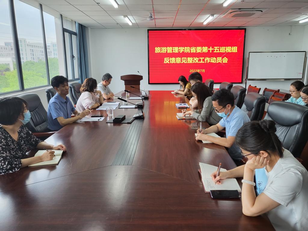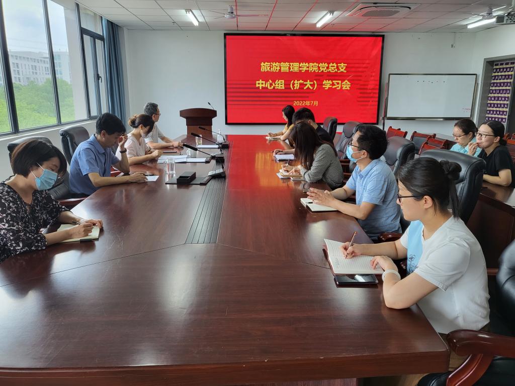 为全面用习近平新时代中国特色社会主义思想武装头脑、指导实践、推动工作,深入学习贯彻习近平总书记关于防灾减灾救灾工作的重要论述和指示批示精神,全面落实省委书记楼阳生同志在全省防汛工作会议和省应对特大洪涝灾害应急演练中的讲话精神,深入学习贯彻全省能力作风建设年活动读书会精神,不断提高领导现代化河南建设的能力和水平,提高领导干部风险防控意识和防汛抢险能力。2022年7月8日,旅游管理学院党总支开展理论学习中心组(扩大)学习会,院科级以上干部和支部书记参加学习。