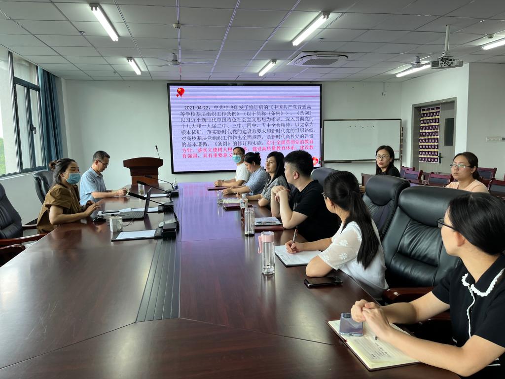 会上,杜丽带领大家解读了《中国共产党支部工作条例(试行)》《中国共产党普通高等学校基层组织工作条例》,并对如何规范书写“三会一课”记录、严格执行主题党日制度、组织生活会制度以及党费收缴、党员发展等相关知识进行了详细培训。培训会结束后,大家一起相互检查、观摩了各党支部的党务工作材料,结合反馈的问题,对基层党建工作中存在记录不规范等问题进行了重点强调,提出了解决办法,并围绕学生党支部如何做好党建带团建工作,教研室党支部党务工作与业务工作如何深度融合等进行了经验分享。