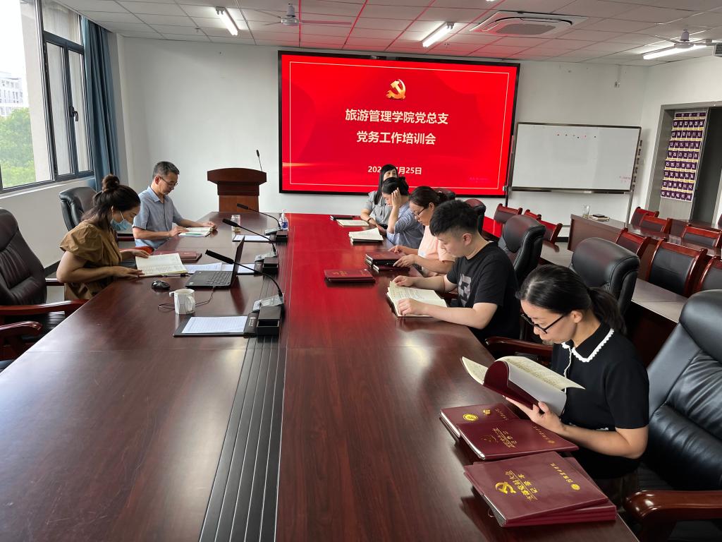 为深入推进基层党组织标准化规范化建设,全面提升党务工作者队伍建设和党务工作水平。7月25日下午,旅游管理学院党总支在310会议室开展党务工作业务培训会。学院党总支副书记杜丽担任主讲,各党支部支委委员、专职组织员参加了培训会。