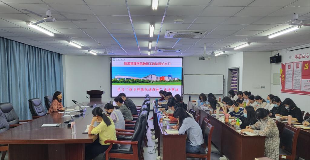 为贯彻落实《关于深入开展向“新乡师德先进群体”学习活动的通知》(豫教党[2022]135号)及beat365在线平台官网《关于开展向“新乡师德先进群体”学习活动的通知》精神,9月27日下午,旅游管理学院在310会议室开展向“新乡师德先进群体”集中学习活动。会议由党总支副书记杜丽主持,全院教职工参加。