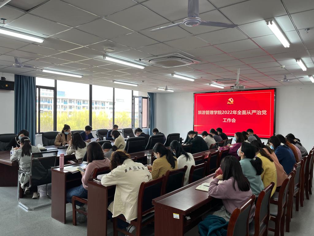 3月15日,旅游管理学院召开2022年全面从严治党工作会。学院领导班子成员和全体教职工参会,会议由院党总支副书记杜丽主持。